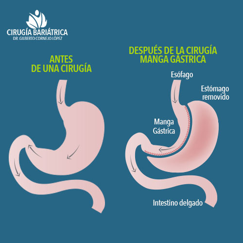 La Cirugía de Manga Gástrica es un procedimiento restrictivo que consiste en el corte longitudinal del estómago por vía laparoscópica (sin abrir el abdomen), quitando la parte más ancha del estómago y dejando un delgado tubo. Haciendo el estómago más pequeño, favoreciendo la saciedad temprana y disminuyendo la capacidad para comer en exceso.